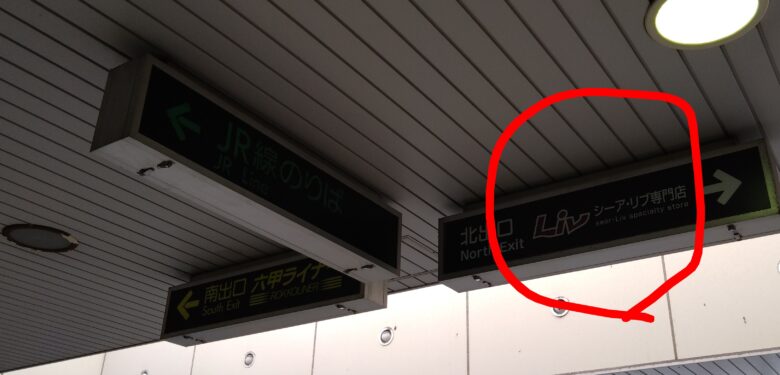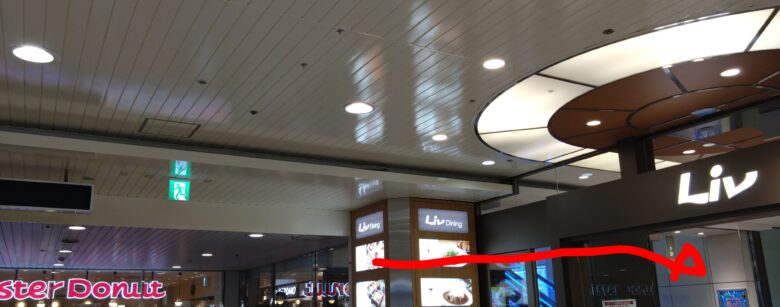 進行方向(赤矢印の方向)にすぐLiv(リブ)の入り口が見えてきます。